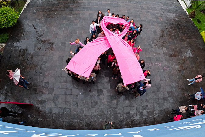 La Universidad Autónoma de Querétaro (UAQ), a través de la Secretaría de Vinculación y Servicios Universitarios (SVSU), arrancó la jornada “La UAQ se viste de rosa” por la detección y prevención del cáncer de mama y cáncer cervicouterino, en el marco del 19 de octubre, Día Mundial contra el Cáncer de Mama. La iniciativa busca sensibilizar sobre la importancia del diagnóstico temprano y la prevención de estas enfermedades.