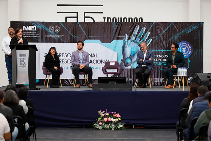 La rectora de la Universidad Autónoma de Querétaro (UAQ), Dra. Silvia Amaya Llano, inauguró el 38° Congreso Nacional y 24° Congreso Internacional de Informática y Computación ANIEI 2025, organizado en colaboración con la Asociación Nacional de Instituciones de Educación en Tecnologías de la Información. Subrayó la importancia de la formación integral y la contribución entre academia, industria y gobierno a fin de fortalecer el talento humano y la innovación tecnológica.