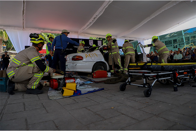 Por varios minutos, el personal de PC municipal, junto con elementos de la Secretaría de Seguridad Pública, atendió a las y los involucrados en esta representación, mostrando al público cada uno de los procedimientos técnicos y médicos que se aplican ante una emergencia real. Mediante el uso de herramientas especializadas y brigadas capacitadas, se explicó de manera detallada la tarea que realizan y las funciones específicas que desempeñan.
